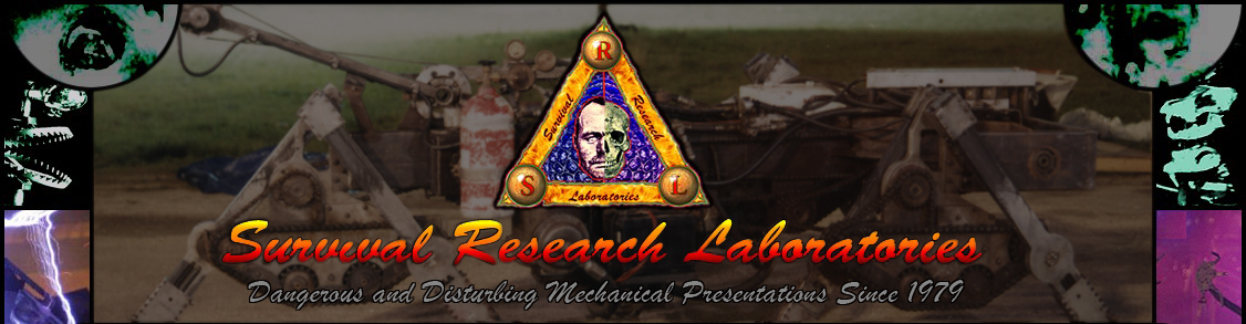 Mark Pauline built a 6-legged walking robot with a harness that held his guinea pig Stu in place. The guinea pig's movements actuated motors to move the robot. Stu performed in several of the early SRL shows in the '80s.