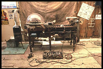 The rabot is a dead rabbit re-animated and kept over Mark Pauline's desk over the years.