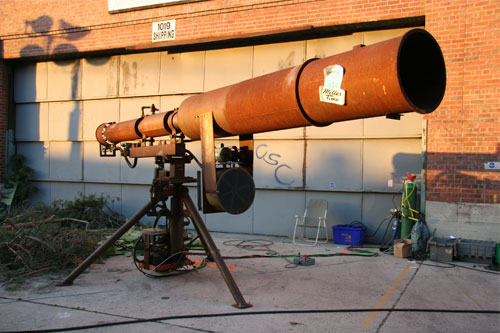 This giant stationary device forms vortex rings of air and projects the rings at high speeds.