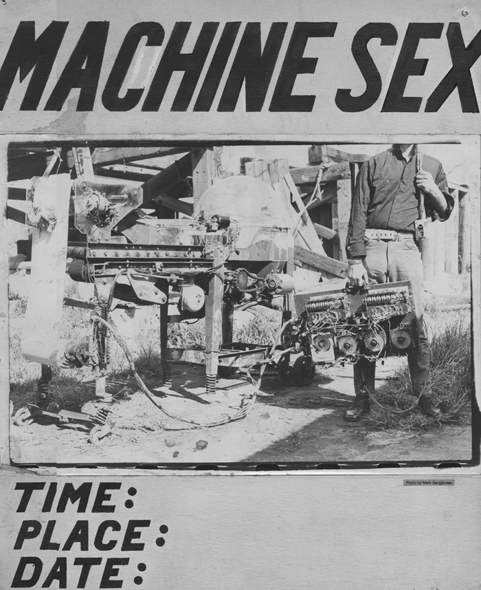 The first SRL performance. Mark Pauline set up the De-Manufacturing Machine (the first SRL machine) at the Chevron station where it 'processed' dead pigeons dressed as Arabs.