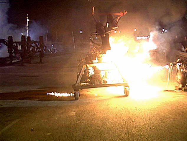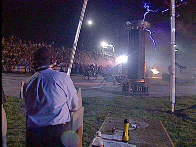 Tesla Coil with Running Machine, Triangle Machine, and Subjugator in background