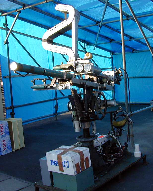| The Air Launcher can shoot explosive rounds at 500mph at a distance of .5 miles. It is normally controlled with a head mounted device for aiming and a button for starting the load and firing sequence. It has been modified to allow remote operation of the machine. People from Germany, Tokyo, Chicago have successfully aimed and hit targets with the Air Launcher located in San Francisco | |