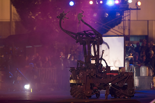 Some things are purely mythic like Survival Research Labs, which springs from the shell of abandoned buildings, monster robotic history, and fire. An interdisciplinary mash-up like no other, SRL, brings a newly conceived performance to ZeroOne San Jose full of its legendary machines, flame-throwers, and bombastic sound. Humans are only present as audience or operators; in this show it.s all about the machines. As described by founder Mark Pauline, an SRL performance is comprised of .ritualistic interactions between machines, robots, and special effects devices." Whatever else you call it, (and the title won.t be announced until just before the show), we call it big fun, exciting, and something you won.t want to miss. This one is definitely for more than the brainiac crowd . it.s monster machine, meets hovercraft, meets huge sculptural creatures, meets fire. See you there.